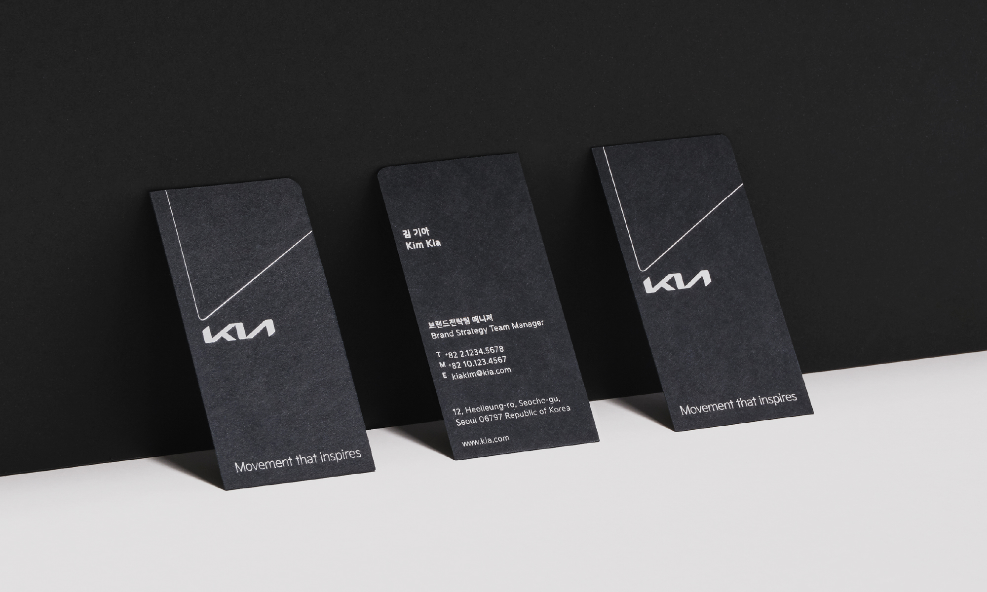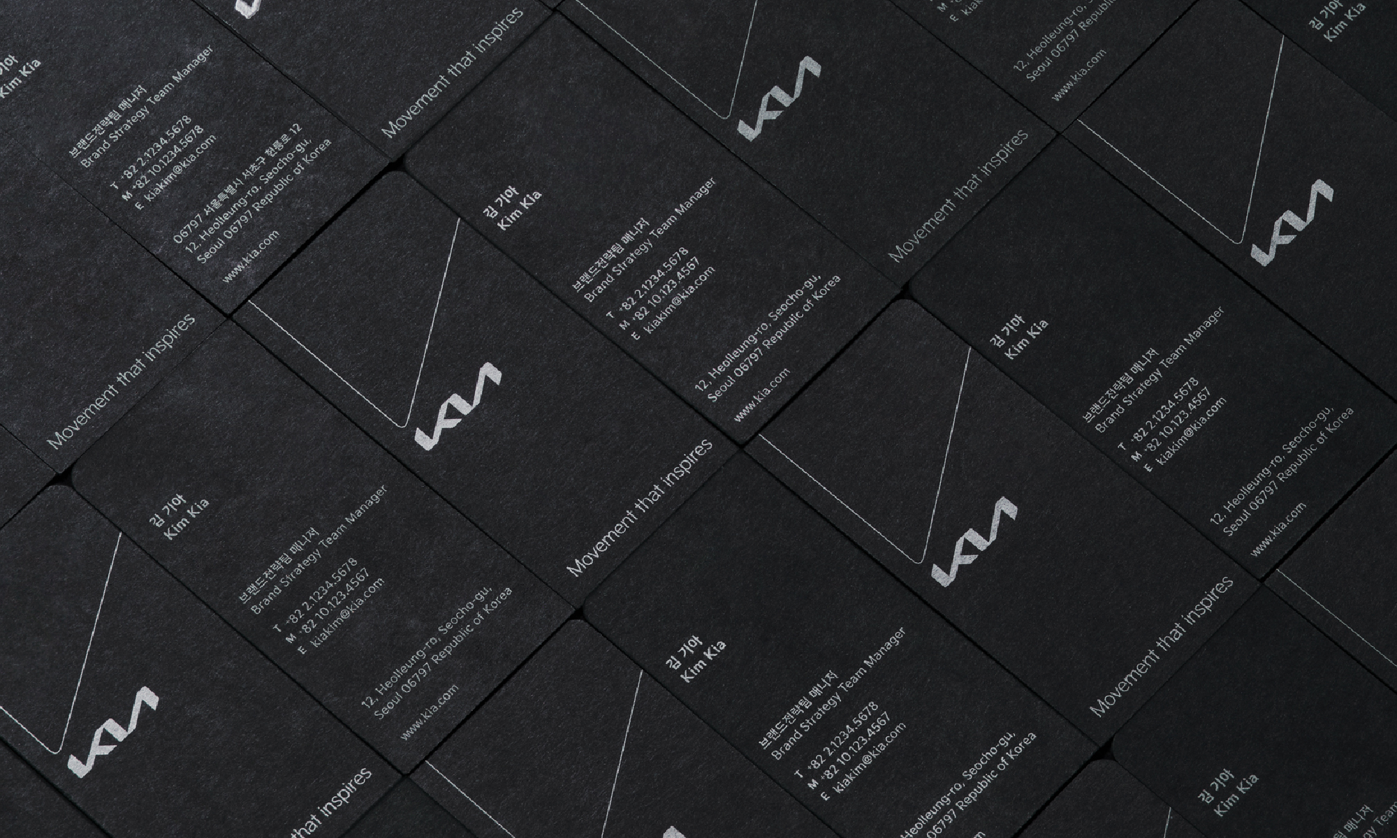 기아의 새로운 전용 서체 ‘기아 시그니처’는 날카로운 가장자리와 굵은 서체로 자동차가 가진 강인한 기계의 느낌을 표현하며, 부드러운 획의 흐름을 통해 단단한 서체에 인간적인 인상을 더합니다.